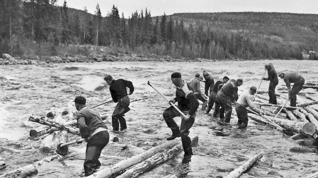 Tømmerfløting i området Alvdal – Olaf Rudolfsen – Digitalt Museum